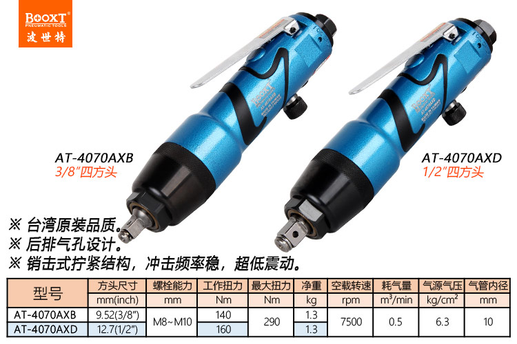東莞市強勁五金工具有限公司提供臺灣BOOXT波世特品牌氣動工具,銷擊式氣動扳手AT-4070AXB廠家直銷,首件享特價。咨詢熱線:4008301980