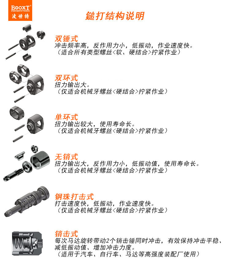 • 產(chǎn)品用途: 適用于各行業(yè)小型螺栓螺帽的擰緊或拆卸作業(yè)。【工業(yè)型/鋼珠打擊式】
