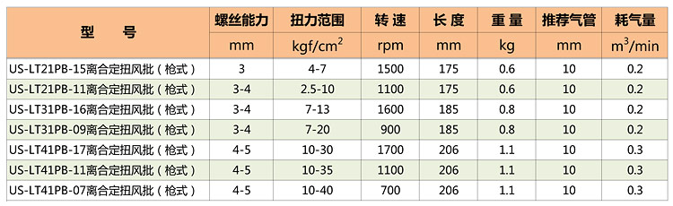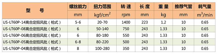 槍型定扭力風批特點: