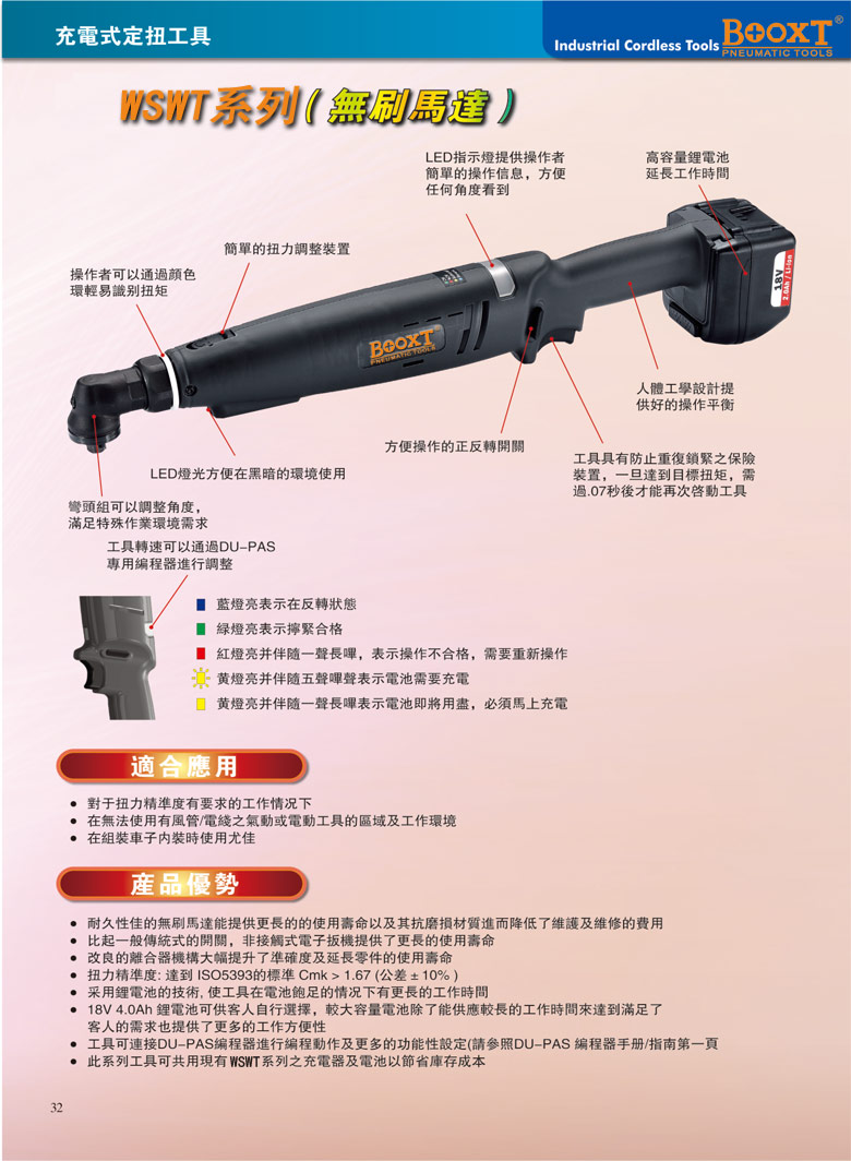 東莞強勁五金工具有限公司提供臺灣BOOXT波世特氣動工具,充電調扭力彎頭風扳WSWT-1035B廠家直銷,首件享特價。咨詢熱線:4008301980
