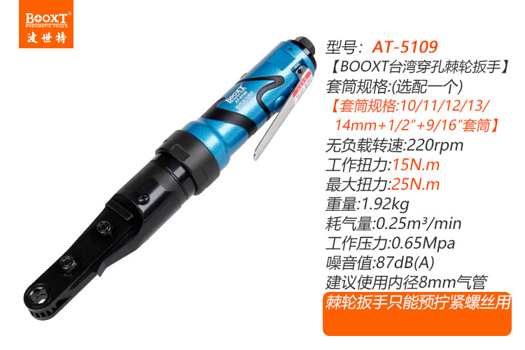 東莞市強勁五金工具有限公司提供臺灣BOOXT波世特品牌氣動工具,中空型氣動棘輪扳手AT-5109廠家直銷,首件享特價。咨詢熱線:4008301980