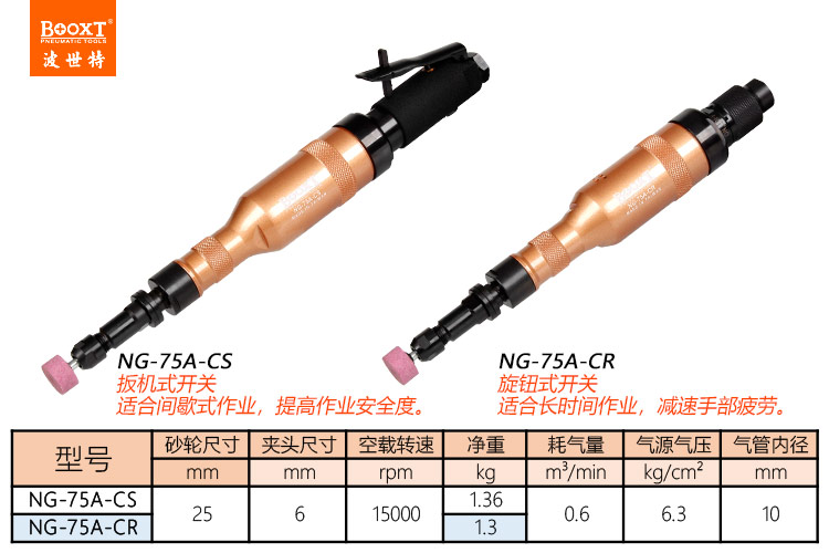 東莞市強勁五金工具有限公司提供臺灣BOOXT波世特品牌氣動工具,加長氣動直磨機NG-75A-CS廠家直銷,首件享特價。咨詢熱線:4008301980