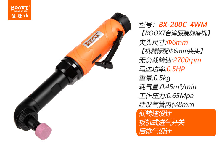 東莞市強勁五金工具有限公司提供臺灣BOOXT波世特品牌氣動工具,加長彎頭風磨機BX-200C-4WM廠家直銷,首件享特價。咨詢熱線:4008301980