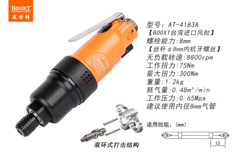東莞市強(qiáng)勁五金工具有限公司提供臺(tái)灣BOOXT波世特品牌氣動(dòng)工具,氣動(dòng)螺絲起子AT-4183A廠家直銷(xiāo),首件享特價(jià)。咨詢(xún)熱線:4008301980