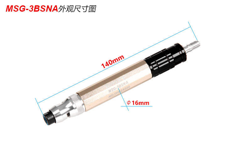 • 產品參數: 夾頭能力:M2.3 /M3.0 空載轉速:60000rpm 全 長:140mm 重 量 : 0.06kg 耗 氣 量:0.14m3/min 【經濟型/大扭力設計】