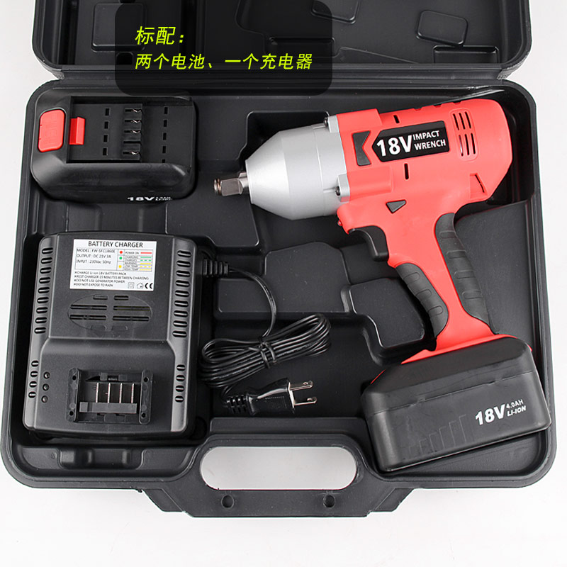 • 產品參數: 電池電壓:18V 電池容量:4.0AH 充電電壓:AC110V-220V / 60Hz 充電時間:75分鐘 方頭尺寸:1/2"; 峰值扭力:850Nm 空載轉速:0-1800rpm; 工具尺寸:長225*高255mm; 重 量:2.48kg;