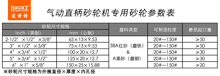 • 產品型號: 氣動直柄砂輪機用砂輪