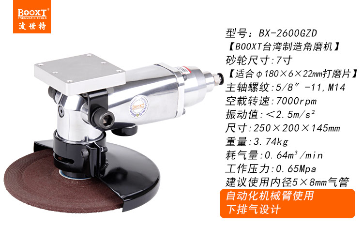 東莞市強勁五金工具有限公司提供臺灣BOOXT波世特品牌氣動工具,氣動角磨機BX-2600ZD廠家直銷,首件享特價。咨詢熱線:4008301980