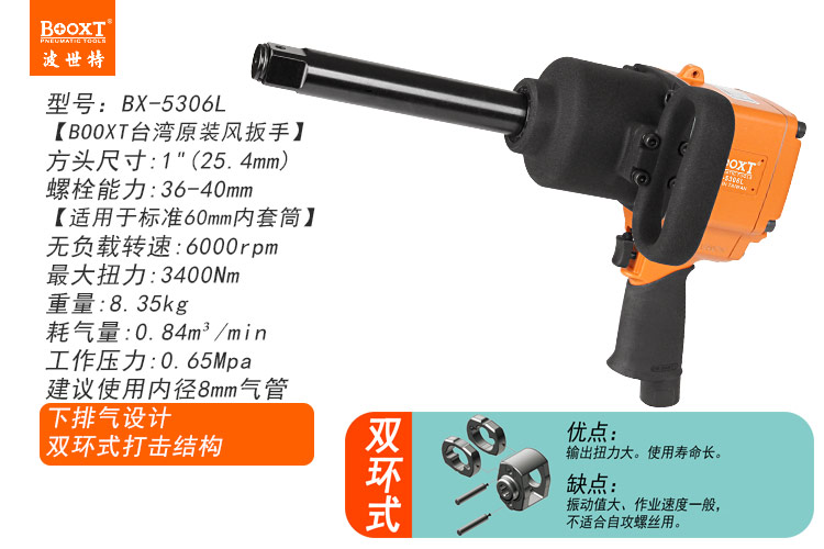 東莞市強勁五金工具有限公司提供臺灣BOOXT波世特品牌氣動工具,槍式風(fēng)炮BX-5306L廠家直銷,首件享特價。咨詢熱線:4008301980