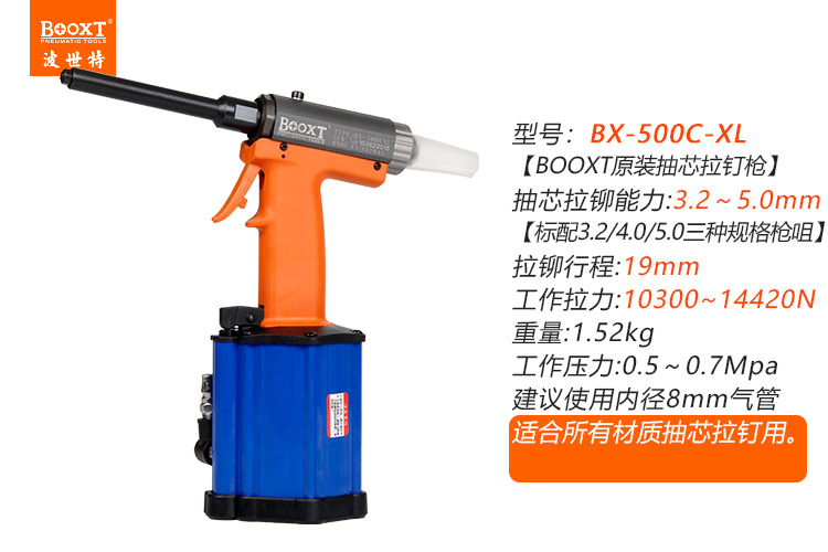 東莞市強勁五金工具有限公司提供臺灣BOOXT波世特品牌氣動工具,加長氣動鉚釘槍BX-500C-XL廠家直銷,首件享特價。咨詢熱線:4008301980