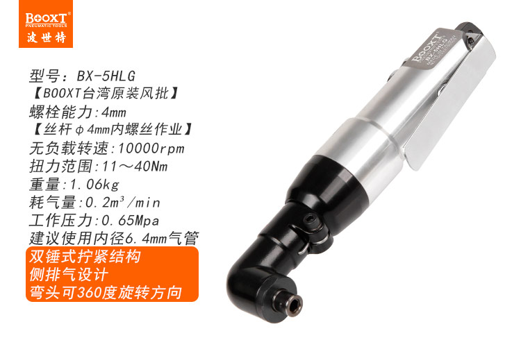 東莞市強勁五金工具有限公司提供臺灣BOOXT波世特品牌氣動工具,耐用彎頭風批BX-5HLG廠家直銷,首件享特價。咨詢熱線:4008301980