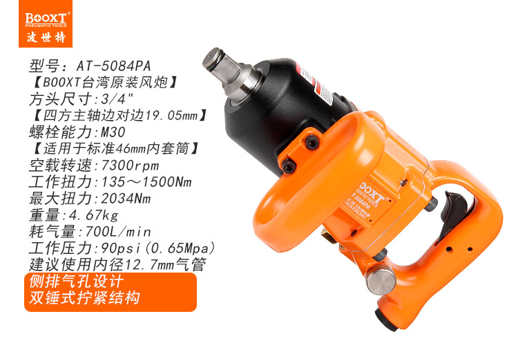 東莞市強勁五金工具有限公司提供臺灣BOOXT波世特品牌氣動工具,無銷式風炮AT-5084PA廠家直銷,首件享特價。咨詢熱線:4008301980