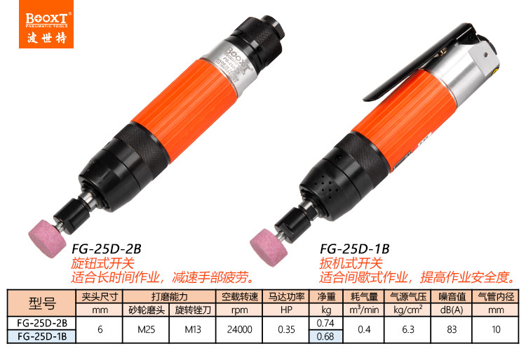東莞市強(qiáng)勁五金工具有限公司提供臺(tái)灣BOOXT波世特品牌氣動(dòng)工具,高精度氣動(dòng)直磨機(jī)FG-25D-1B廠家直銷,首件享特價(jià)。咨詢熱線:4008301980