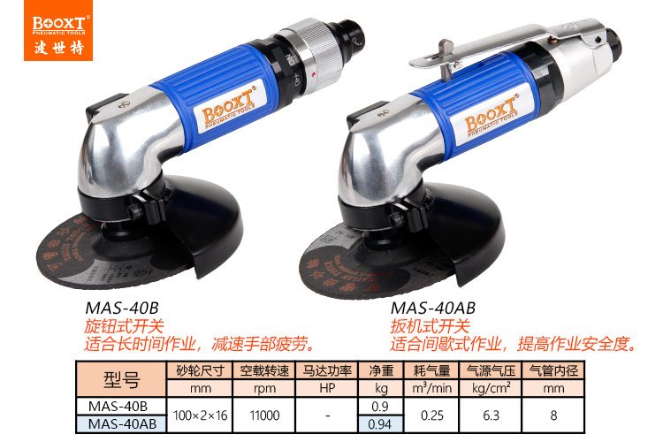 東莞市強勁五金工具有限公司提供臺灣BOOXT波世特品牌氣動工具,輕型氣動角磨機MAS-40B廠家直銷,首件享特價。咨詢熱線:4008301980