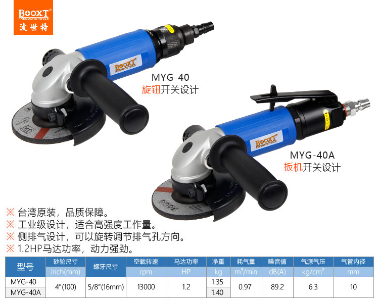 東莞市強勁五金工具有限公司提供臺灣BOOXT波世特品牌氣動工具,工業級氣動角磨機MYG-40廠家直銷,首件享特價。咨詢熱線:4008301980