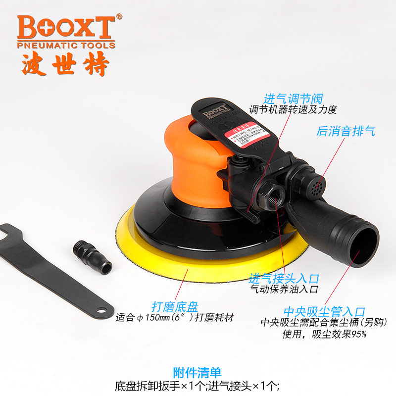 6寸吸塵氣動磨光機特點: