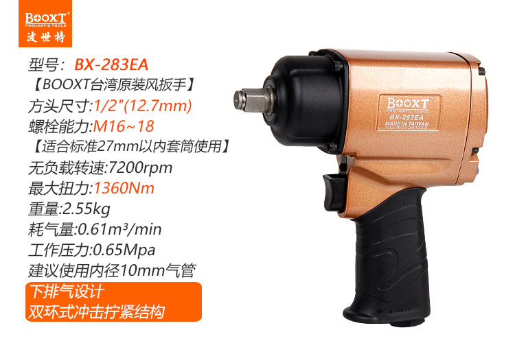 東莞市強勁五金工具有限公司提供臺灣BOOXT波世特品牌氣動工具,風動扳手BX-283EA廠家直銷,首件享特價。咨詢熱線:4008301980