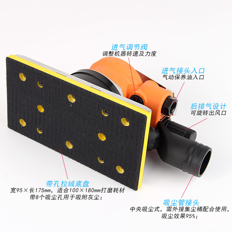 吸塵方形氣動打磨機特點: